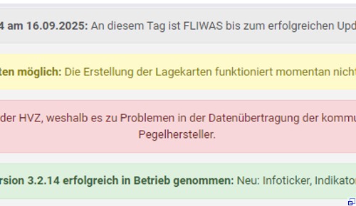 Die neue FLIWAS Version 3.2.14 wurde am 16.09.2025 erfolgreich in Betrieb genommen. Als wichtigste Neuerungen stellen wir Ihnen im Folgenden den Infoticker und den Indikator für DWD-Wetterwarnungen auf Gemeindeebene vor.